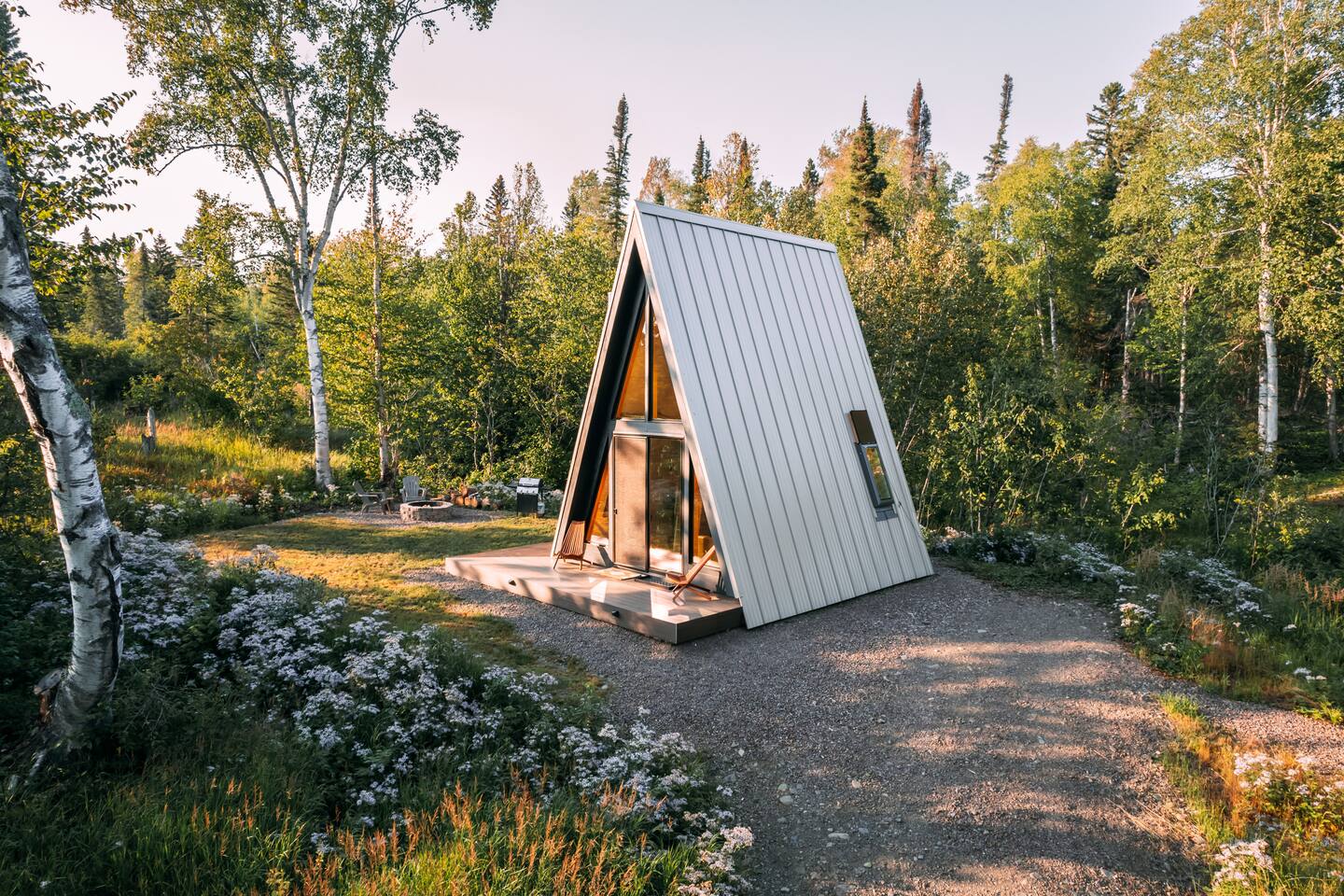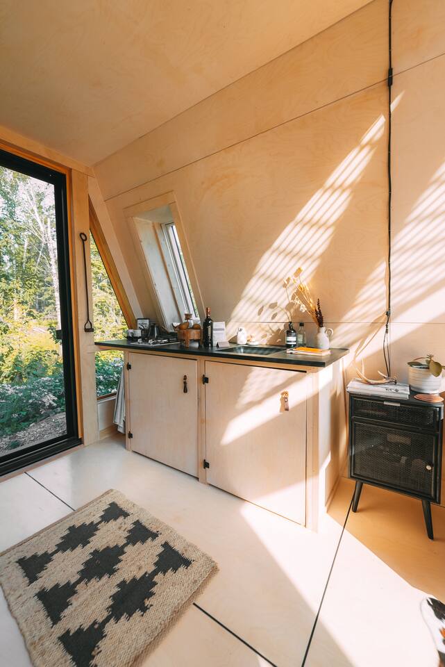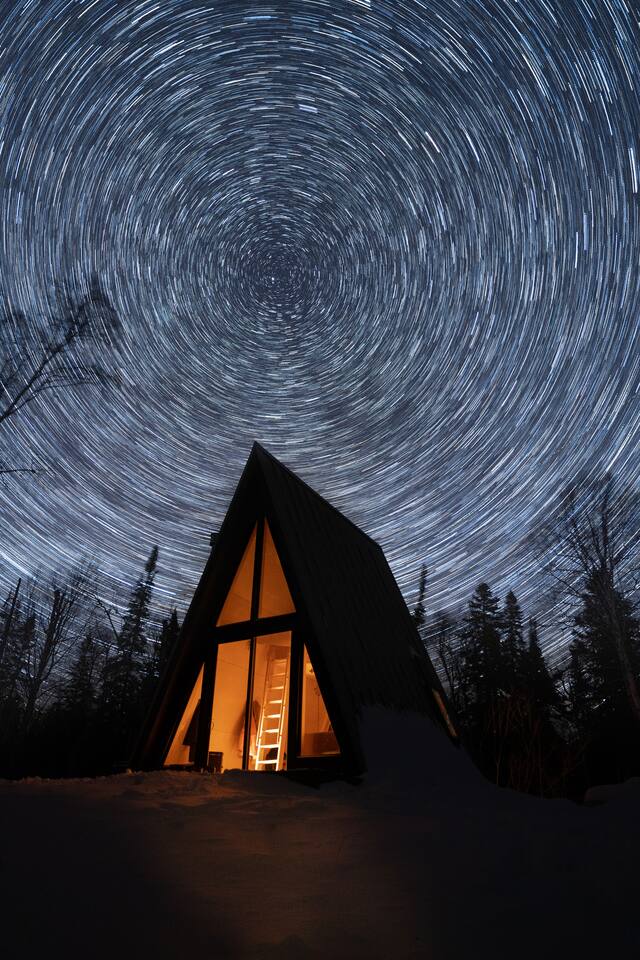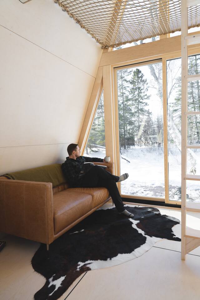 Welcome to Gaucho Cabin, Great Northern Property ⋇ Built & operated by your local hosts ⋇ Nestled in a blanket of trees, it blends both seclusion and companionship. Escape the chaos of life as you completely unwind by the fireplace. Let your imagination wonder on the Lake Superior beach or take a nap in the hammock after a long day of hiking/skiing. 2 pairs of snowshoes are provided for guests use - free of charge. Enjoy a snowshoe in our own private trail just out the front door which connects to The Superior Hiking Trail. Surrounded by evergreen and birch trees, there is a wide variety of North woods flora and fauna, meandering creeks, and the gorgeous Lake Superior just a short walk away.. The open floor plan and a wall of windows keeps light in during the day, while at night it erases the division between inside and out, giving you the feeling of floating amongst the stars. The expansive night sky in this dark sky sanctuary is especially clear on our wrap around deck. Enjoy walks to the beach, breathtaking sunsets and beach bonfires, kayaking, biking, hiking to the nearby waterfalls, shopping for vintage treasures or just relaxing/stargazing in the beautiful private backyard. Built for travelers seeking a retreat in a sustainable stay, we designed this cabin to offer all the necessities one would need in thoughtfulness of nature: solar power for lighting and charging electronics, gas fireplace and stove, A-frame outhouse and rain barrel collection. The inspiration for Gaucho Cabin came from our time spent living in Argentina, which is where our story together began. Our hope is that travelers can enjoy the same serenity from nature in this rustic refuge that our journey’s brought us. The interior has been thoughtfully curated with unique decor from Patagonia, Argentina and local Grand Marais artists. Inside + Queen Mattress + Dishes, pots, pans, cutlery, kettle & all basic necessities for cooking. + Linens & Towels + Gas Fireplace + 2 Burner Gas Stove +Drinking water in jugs +Ground Coffee, tea & hot cocoa Outside + Wood-fired Sauna (Shared with one other cabin on property) + Charcoal Grill (summer only) + Fire Pit + Hammock + 2 Pairs of Snowshoes (Winter): Enjoy a snowshoe in our own private trail just out the front door which connects to The Superior Hiking Trail. +Lake Kits - Please enjoy our complimentary packable lake kits which include two packable fold out chairs, a cooler tote and weatherproof picnic blanket. *Some of the above supplies are seasonal. Please see our FAQ regarding these items. 🇨🇦10% Canadian Discount To Our Canadian Friends, Grand Marais has always been a place where communities come together, and for years, Canadians have been an essential part of this town’s heart and spirit. Your presence, your stories, and your love for the North Shore make this place even more special. As a small way of showing our gratitude, we’re offering a discount to our Canadian guests. We know times aren’t easy, and we want to make it a little lighter for you to visit a place that has felt like home for so many. We’d love to welcome you back—whether it’s for a quiet retreat, an adventure in the woods, or just time to breathe in the lake air. Cook County Rental License: 2024-046-VR