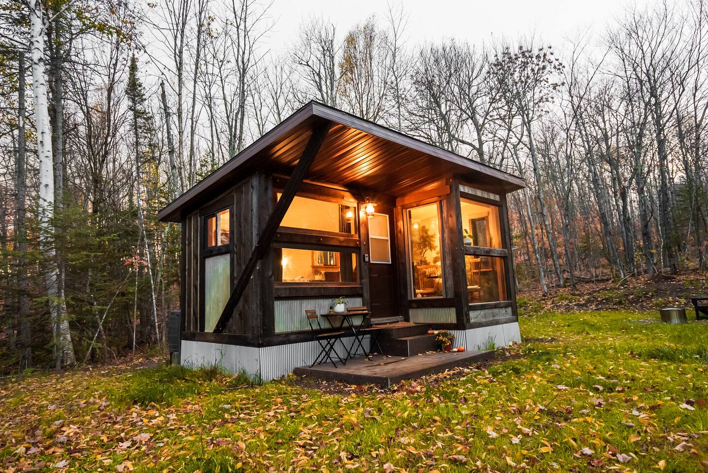 Locally hosted, this tiny cabin rests in an old growth maple forest just 5 minutes from the beaches of Lake Superior and 15 minutes from downtown. Whether you are catching the sunset on the deck, exploring the endless hikes nearby, or playing a card game by the fire, this space offers the ultimate cabin experience. Embrace the elements with a wood-fired sauna after your adventures at the nearby sites. Unwind next to a crackling camp fire beneath the canopy of stars in this dark sky sanctuary ✦